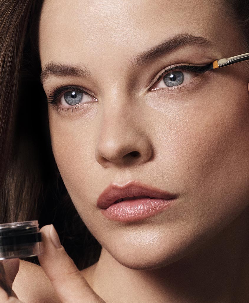 Нанесите вдоль линии роста ресниц и на слизистую верхнего века. Даёт эффект густых ресниц даже без туши.