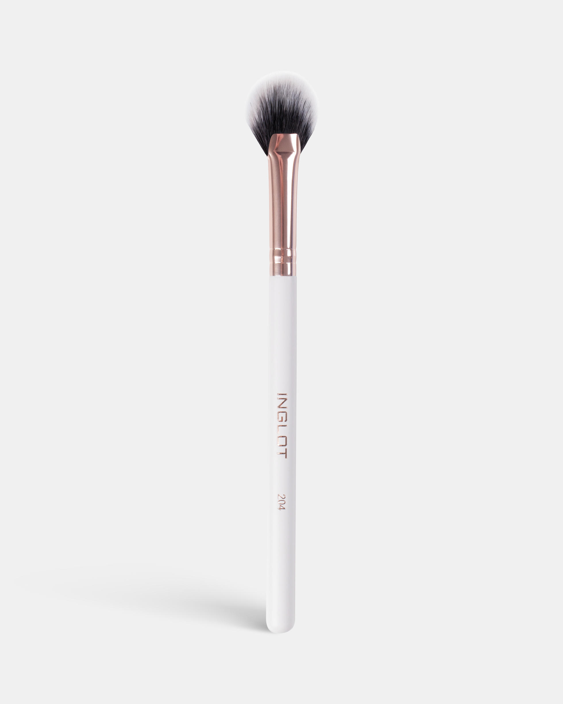 Веерная кисть для лица INGLOT Makeup Brush 204 - это профессиональный инструмент для нанесения хайлайтера. Она плотно собрана из синтетического ворса, который имитирует натуральный, что позволяет равномерно и аккуратно наносить хайлайтер, полируя кожу.